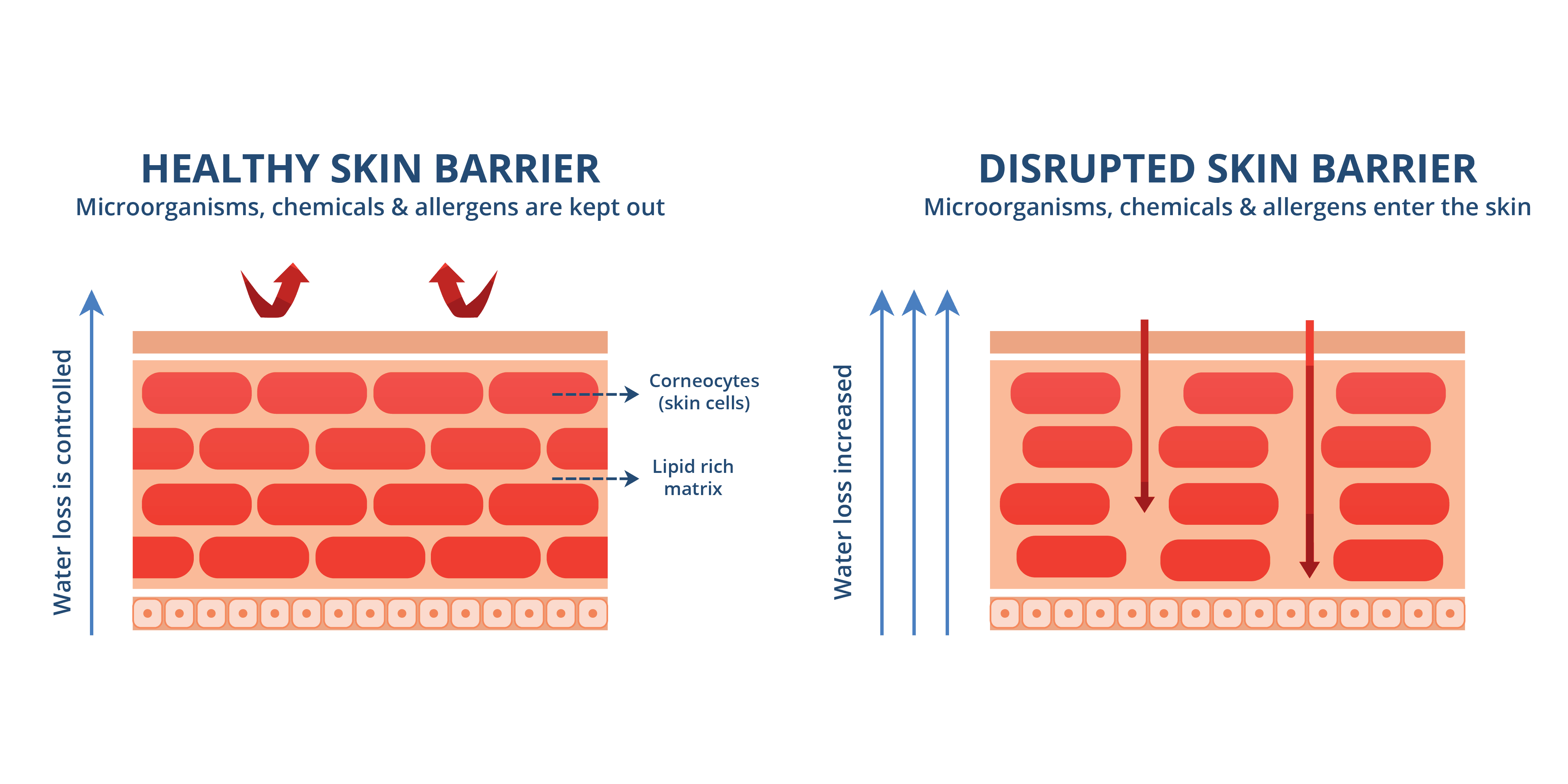 Being vulnerable affects the water retention capability of our skin, leading to dehydration of the corneocytes. This is what causes dry, cracked skin, which results in loss of ability to protect us from environmental agents, subsequently leading to an inflammation of the skin, such as eczema.