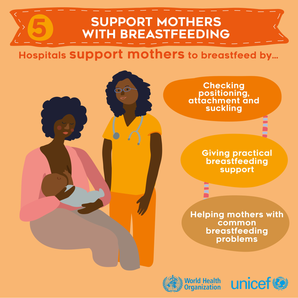 5. Menyokong ibu memulakan dan mengekalkan penyusuan susu ibu dan menguruskan kesukaran yang biasa berlaku.